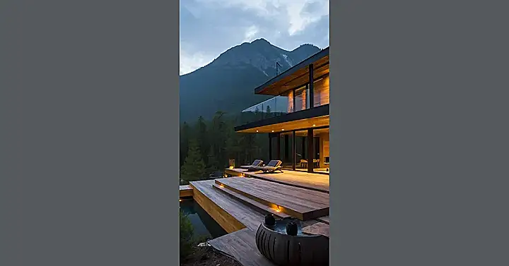 Imagine this: You’re chilling in a super fancy, modern house in the middle of nowhere, but it’s not just any house, it’s a mountain house! It’s got those big windows that let you see all the trees and stuff, and it’s like a real-life Instagram photo. You can even see the stars at night, which is way cooler than looking at a screen. It’s basically a grown-up treehouse, but with better bathrooms.