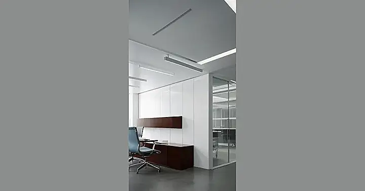 This office space looks like a pretty chill place to get some work done. It’s got all the essentials – a long desk, comfy chairs, and even some snazzy lighting. You can tell the designers put a lot of thought into making sure everyone has a good view, because it even has a mirror for those crucial mid-work selfie sessions. Imagine trying to focus on your algebra homework with all that extra space to stretch your legs! This office is like a super-organized classroom, but way more stylish!