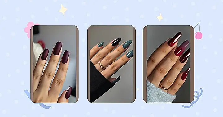 Plus, burgundy is a really versatile color. You can go for a classic, polished look like the one in the pic, or get creative and add some sparkly accents or even some fun fall-themed nail art. So, if you’re looking for a new nail look to try this fall, go for burgundy! It’s the perfect way to show off your edgy style while keeping things comfy and cozy.
