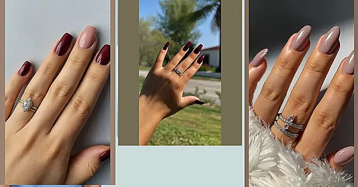 These nails are giving major autumn vibes! The deep burgundy and nude colors are a perfect match for the changing leaves and cozy sweaters. You can totally picture yourself sipping pumpkin spice lattes and rocking these gorgeous nails. They’re like the chicest version of a Thanksgiving feast, minus the mashed potatoes and cranberry sauce (although who doesn’t love those?).