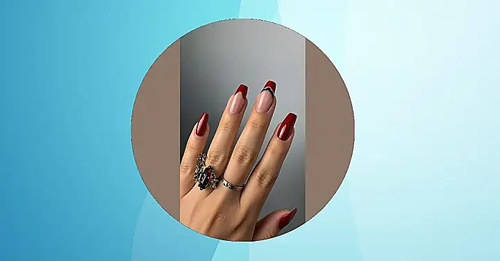These nails are giving serious Halloween vibes without being too scary. They’re like the cool kid who shows up to the party in a cute costume, but still looks totally stylish. The deep red polish is classic, and the black accent nail with the little bow is a super cute touch. It’s like a spooky little surprise, hidden on your finger! It’s a little bit edgy, a little bit fancy, and definitely ready to party.