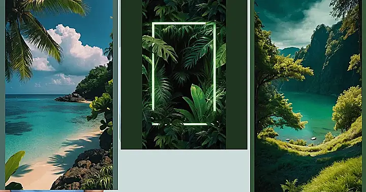 This image is like stepping into a jungle, but with a cool twist! It’s all green and leafy, just like you’d imagine a jungle to be, but there’s this bright, glowing green rectangle in the middle. It’s like someone snuck a neon light into the heart of the jungle, making it look super modern and kinda mysterious. It’s definitely a great wallpaper for anyone who loves nature and wants something a little different.