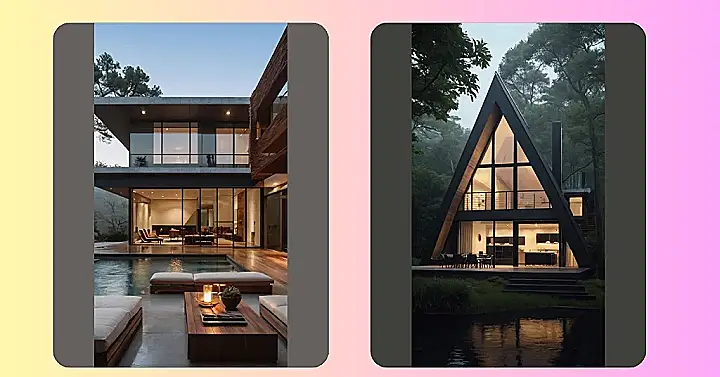 This house is like a giant window frame, showcasing the beautiful trees and the starry night sky. It’s got all the important stuff, like a comfy couch and a cool pool, but it’s super simple and sleek. No clutter, no distractions, just the peace and quiet you need to relax and enjoy the scenery. It’s like living in a nature magazine, but with a super fancy, modern twist!