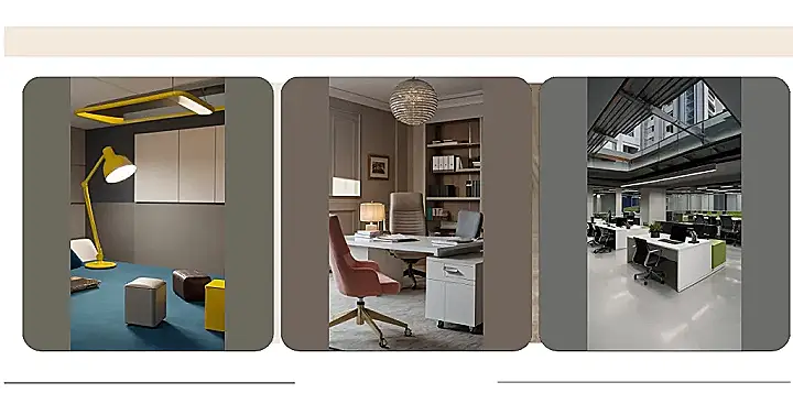 The office design is all about that sleek and modern vibe. It’s got dark colors, clean lines, and just the right amount of light to keep things feeling bright and airy. It’s like having a personal workspace that’s actually cool and inspiring, not boring and dusty like some offices you see!
