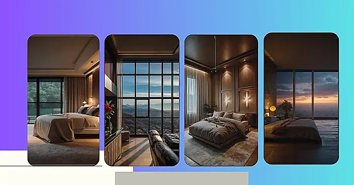 Imagine waking up to the sun painting the sky with a thousand shades of orange and pink, all from the comfort of your own bed! This picture makes you feel like you’re living in a cool and modern apartment with a view that’s straight out of a dream. It’s like the room is saying, “Hey, relax and enjoy the view while sipping your morning coffee, because life is pretty amazing!” Maybe the bed is even mint green, like a calming oasis in this incredible urban jungle.