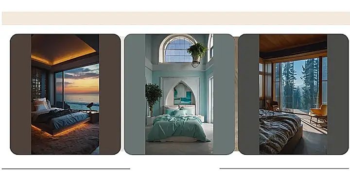 Imagine waking up to the sun painting the sky with a thousand shades of orange and pink, all from the comfort of your own bed! This picture makes you feel like you’re living in a cool and modern apartment with a view that’s straight out of a dream. It’s like the room is saying, “Hey, relax and enjoy the view while sipping your morning coffee, because life is pretty amazing!” Maybe the bed is even mint green, like a calming oasis in this incredible urban jungle.