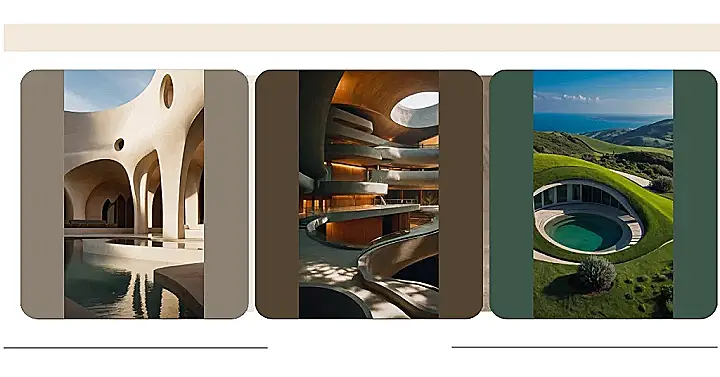 Imagine a house that looks like it grew right out of the ground, like a giant, comfy mushroom. That’s kind of what “organic architecture” is all about. It’s like when a house is designed to fit perfectly with its surroundings, like a puzzle piece in a beautiful landscape. The house in this picture is a great example – it’s got a grassy roof that blends right in with the hills, and it even has a pool that looks like a little pond! It’s like someone took a giant scoop of dirt and made a cozy, modern home, and it looks pretty awesome, right?