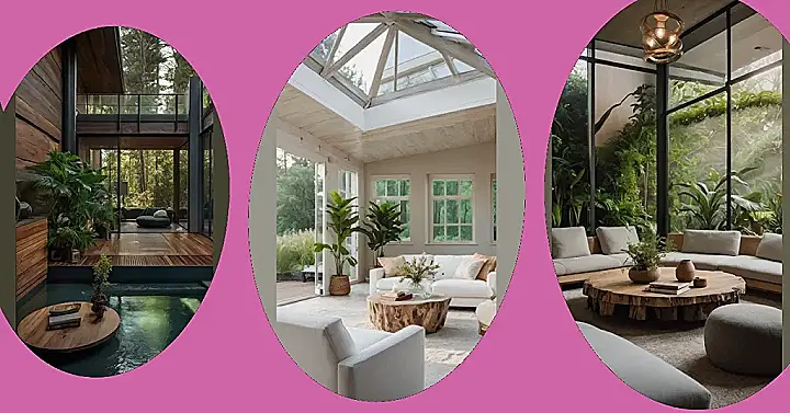 This room is the perfect example of “Nature Living Spaces” – it’s got all the cozy vibes of a comfy living room, but with a natural twist. The plants are like your own personal jungle, and the big windows make you feel like you’re part of the world outside. It’s the best of both worlds – comfy and connected to nature. Who wouldn’t want to hang out here?