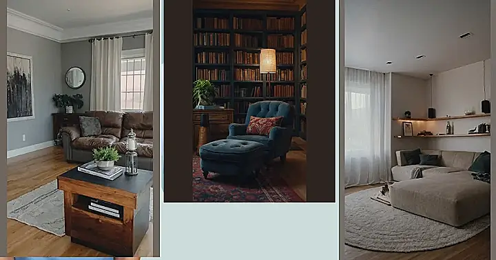 This living room is like a breath of fresh air—no clutter, just comfy vibes. It’s like the opposite of your friend’s house, where every surface is covered in trinkets and you’re afraid to even sit down! This space is all about relaxing and enjoying the simple things, with a sleek couch that practically begs you to sink in and a bookshelf that says, “I’ve got some good reads if you need ’em.” There’s nothing here that screams for attention, just a chill vibe that lets you unwind and be yourself.
