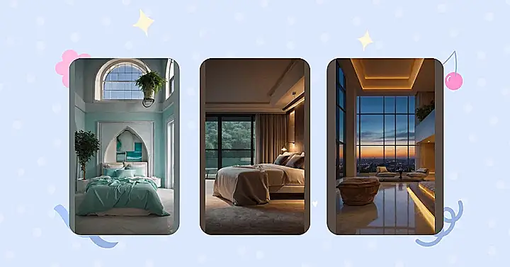 The room itself is super cozy with its comfy bed, cute plants, and a pile of books just waiting to be read. And with the sun setting in a beautiful burst of orange and gold, it’s like the whole world is giving you a big, warm hug. Who wouldn’t want to relax in a room like this?