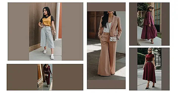This outfit is like a secret weapon for looking super stylish without even trying too hard. It’s the perfect mix of laid-back and elegant, kind of like that friend who always looks effortlessly cool. The maroon pants and blouse are like a cozy, sophisticated hug, while the dainty necklace and little clutch add a touch of “I’ve got this” confidence. It’s the kind of look that screams “I’m not trying too hard, but I look amazing!”