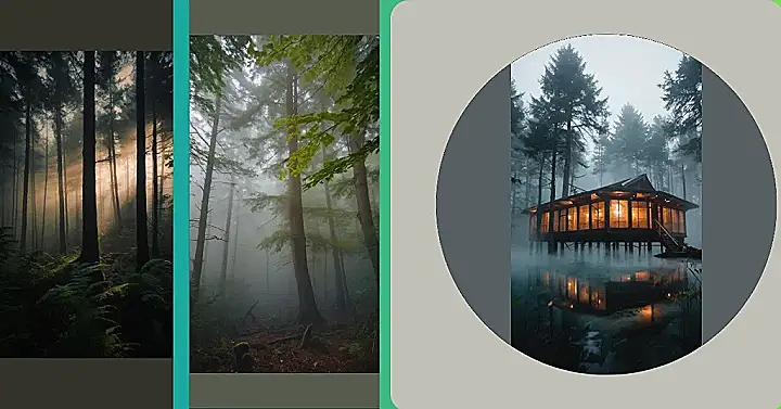 This image makes you feel like you’re walking through a mysterious forest where the fog is so thick, it’s like you’re in a dream. Imagine stepping into this picture, your feet sinking into the soft, mossy ground. The tall, dark trees reach up towards the sky, their branches tangled together like a giant web. The only light you can see is a faint glow through the fog, and you wonder what might be lurking around the corner. It’s kinda creepy, but also kinda cool, right?