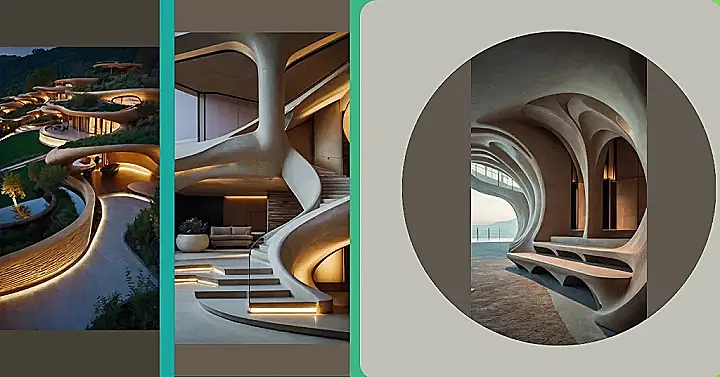It’s called “organic architecture” because it looks like something that could grow naturally, kind of like a tree or a flower. Imagine if buildings could grow instead of being built! This house is a bit like that – it feels alive and breathing. The architect must have been thinking about nature a lot when they designed this place! They probably even took a swim in a river to get inspired. Who knows what else this crazy building might do next? Maybe it will sprout some grass on its roof!