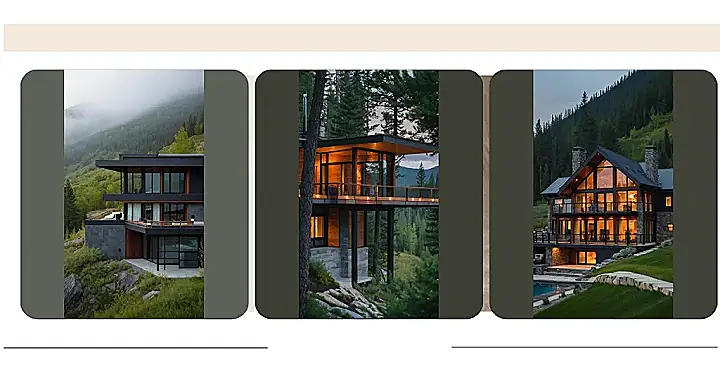 Let’s start with the exteriors that pull you right into their embrace. Imagine crisp, clean lines paired with earthy, natural materials that make your mountain abode stand out without necessarily shouting for attention. From grand stone fireplaces to charming wooden balconies, the exterior architecture is about creating a stunning first impression that complements your mountainous backdrop.