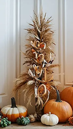 It’s super creative how they’ve styled the pampas grass into a “Happy Fall” banner. It’s like they took all the best parts of Thanksgiving and squished them into one picture. We’re totally inspired to try something like this ourselves. It’s a great reminder that fall decorations don’t have to be traditional – you can totally get creative and add your own unique twist!