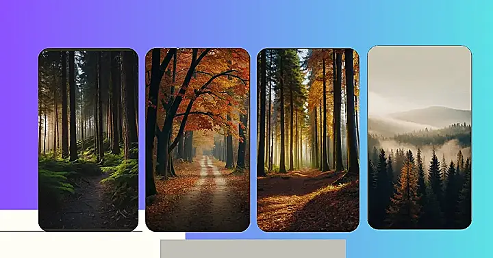 Imagine walking through this forest. The trees are all tall and skinny like they’re trying to reach for the sky, but the branches are full of colorful leaves that look like they’re giving up on the climb and just falling down. It’s like a giant, beautiful game of autumnal limbo. The sun is peeking through the leaves, and the light makes everything look like it’s glowing. If you listen closely, you might even hear the wind whispering secrets through the branches.