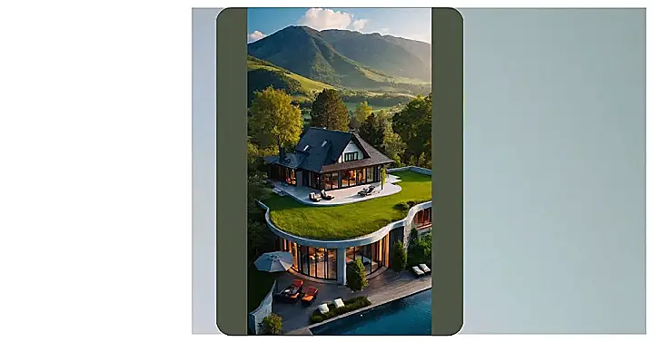 This house is like something out of a fairytale! It’s perched on a hilltop with a view of rolling green mountains and a sparkling swimming pool. You can tell that the owners love their lawn, because they even put it on the roof! Now, I know what you’re thinking: “That’s a lot of mowing!” But don’t worry, they probably have a robot for that. 😉