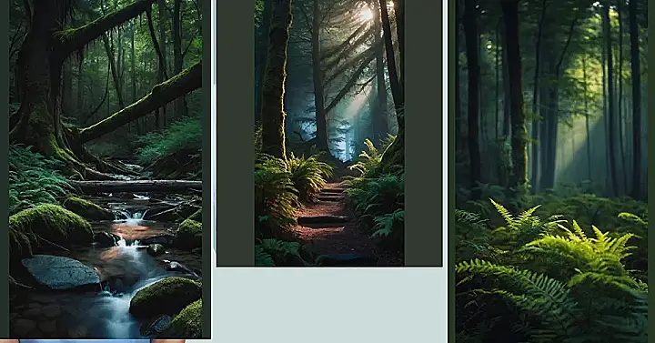 This picture is like stepping into a fairytale! Imagine walking through this mossy, mysterious forest. The sunlight peeks through the leaves, creating beams of light that look like magic. It’s so peaceful and quiet, you can almost hear the whispers of the trees. The tiny stream gurgling over the mossy rocks is like a soundtrack for an adventure. It’s the perfect place to daydream and imagine you’re in a fantasy world.