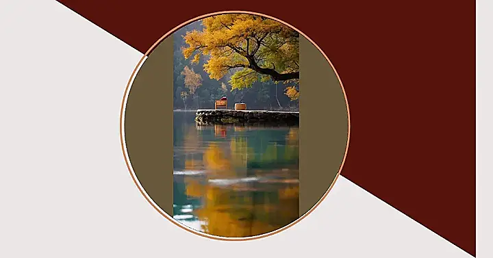This is a picture of a cozy spot by a lake, perfect for escaping the hustle and bustle of daily life. With all those golden leaves, you can practically smell the crisp autumn air and taste the warm apple cider. Honestly, the only thing missing is you!