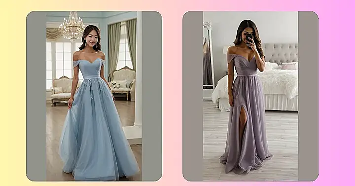 This dress is so dreamy, it’s like stepping into a fairytale! Imagine yourself as a bridesmaid, twirling in this beautiful powder blue gown. It’s got that perfect off-the-shoulder look that’s super stylish, but also comfortable enough to dance the night away at the wedding. No more worrying about uncomfortable straps or itchy fabrics—this dress is all about feeling fabulous and looking amazing! Plus, that gorgeous light blue color? It’s totally Instagram-worthy.