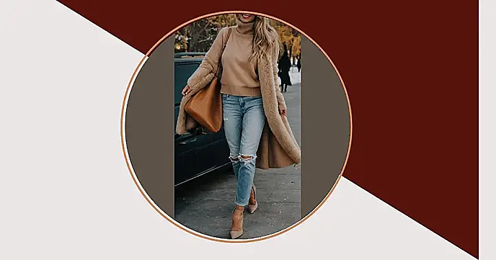 Hey there, fashionistas! Check out this outfit – it’s the perfect blend of cozy and cool for those chilly winter days. Imagine yourself strolling down a snowy street, feeling totally comfy in your ripped jeans and super-soft sweater. That fuzzy coat is like a giant hug, keeping you warm as a toasty marshmallow. And those stylish heels? They add a touch of “wow” without making you freeze your toes off! It’s the kind of outfit that says, “I’m ready for anything winter throws at me – snow, ice, or a surprise snowball fight!” Plus, you’ll totally turn heads with this effortlessly chic look. It’s a western-inspired winter dream come true!