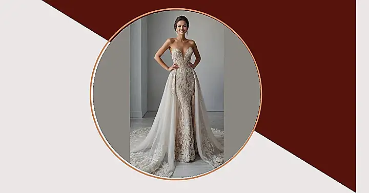 Stepping out in this dress, you wouldn’t just walk, you’d probably glide like you’re on a cloud made of lace and dreams! Imagine trying to navigate a crowded room in that gorgeous, flowing skirt – you’d be accidentally sweeping up crumbs and probably knocking over a few unsuspecting guests with your fabulousness. But hey, when you look this dazzling in a beaded wedding dress, everyone’s just going to be too busy staring to mind a little extra sparkle on their shoes. It’s totally worth it for the ‘I woke up like this’ vibe, even if ‘this’ took three hours and a team of stylists!
