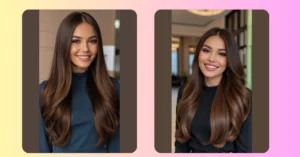 When showing your stylist a photo, point out the specific details you love — the layer length, the face-framing angle, or the volume at the crown.