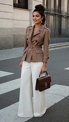 Most weekends, our fashion motto is usually “comfort first,” which often translates to sweatpants and that one hoodie with the mystery stain. But then you see an outfit like this, and suddenly your couch feels a little less appealing. This isn’t just a “Netflix and chill” outfit; this is a “brunch with friends who actually wear real pants” kind of look. It perfectly nails the whole “I’m dressed up, but also I could totally still take a nap in these wide-leg pants” vibe. Talk about raising the bar for our Saturday morning errands!