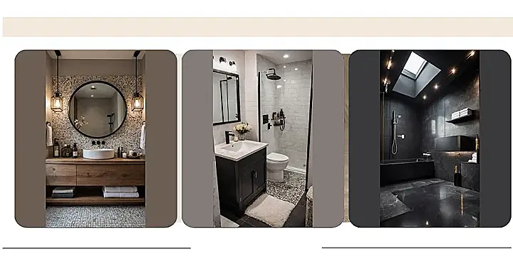 Beyond the pebbles, this whole ‘bathroom decor’ setup is totally goals. Look at that sleek wooden vanity with the super cool round mirror and those awesome lantern lights – they look like they’re straight out of a trendy café, not just where you brush your teeth! Everything is so neatly organized, from the perfectly stacked towels (no chaotic laundry piles here!) to the fancy-looking soap dispensers. It’s the kind of bathroom where you might accidentally spend extra time just admiring the vibe, perhaps even doing a little dance in front of the mirror, because who wouldn’t feel cool in a space like this?