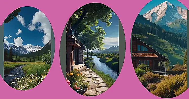 This picture is like a scene straight out of a magical anime! Imagine a cozy log cabin, perfect for a hero’s secret hideout or a peaceful getaway for a group of magical friends. The snow-capped mountain in the background is seriously epic, like something you’d see in a dramatic battle scene, but way more peaceful and beautiful. It’s the kind of backdrop where anything could happen – maybe a friendly forest spirit will pop by, or a mischievous dragon will fly overhead! You could totally use this as a super awesome wallpaper for your phone or computer; it’s got that perfect blend of adventure and chill vibes.
