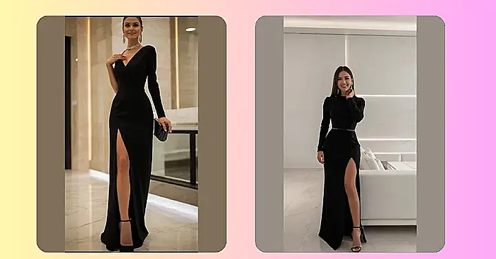 These dresses are so elegant, they practically walk themselves to the party! Seriously, imagine showing up looking this amazing without having to spend hours agonizing over what to wear. Forget the fuss, these sleek black numbers are the epitome of effortless chic. One shoulder, long sleeves, thigh-high slits – they’ve got options for every kind of party vibe, from sophisticated soiree to a slightly more wild dance floor. Plus, black is always in style, which means you can rock these babies again and again.