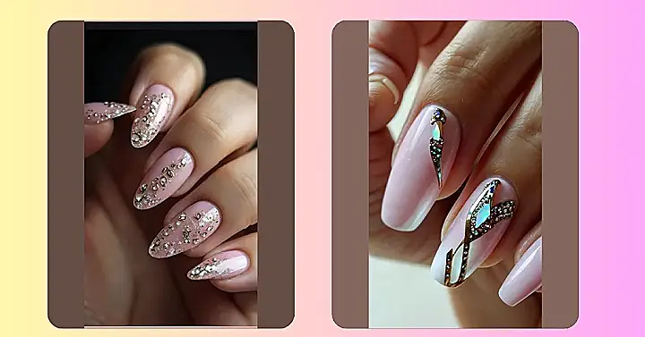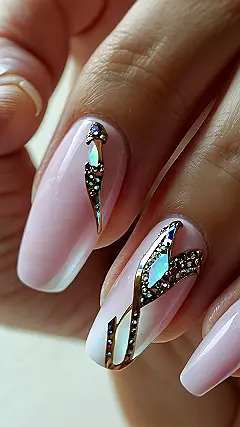 Seriously, who needs a poster when you can have nail art this incredible? The subtle pink is super calming, but those gold sparkles add just the right amount of pizzazz. You could almost frame these nails and hang them in an art gallery, right? Okay, maybe not *almost*. But it’s fun to think about! It’s like wearable wall decor that you can change whenever you want – how cool is that?