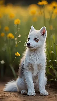 This little fluffball is seriously adorable! Just look at those big, curious eyes and that perfectly fluffy tail. This pup is probably thinking about all the fun adventures he can have in that field of yellow flowers. I bet he’s just itching to chase butterflies and sniff every single blossom!