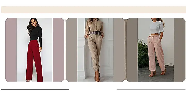 This picture shows a woman rocking a super stylish look with trousers. She’s got that “I’m ready to conquer the world” vibe going on, and her trousers are definitely part of it! It’s all about those wide-legged, comfy trousers that make her look so put together, but without the feeling of being trapped in a pair of skinny jeans. Plus, she’s got a cute shirt and a belt that really brings the whole outfit together.