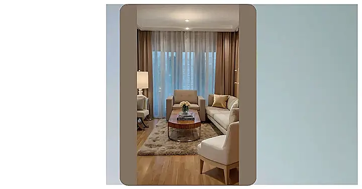 And speaking of fancy, that coffee table is definitely a showstopper! It’s like a piece of art in itself, with that sleek, modern design and the way it reflects all the light from the windows. You could spend hours just admiring it (and maybe even getting lost in the reflection of the coffee table in those stylish curtains!) This living room is definitely a place where you can relax and feel like royalty, and the curtains are a big part of that.