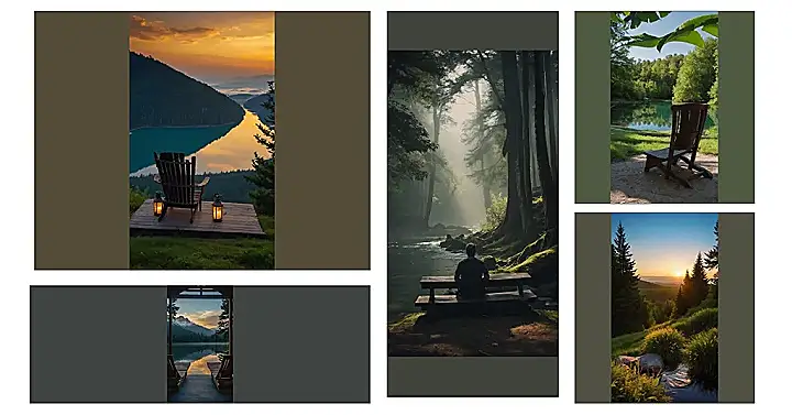 Imagine this: you’re chilling in a comfy wooden chair, watching the sun dip below a mountain range, painting the sky in fiery oranges and soft yellows. A gorgeous lake mirrors the sunset’s colors, making the whole scene look like a double dose of awesome. There’s even a pair of lanterns keeping the mood cozy, all while nature does its thing – the ultimate mind-relaxing nature location! It’s like someone designed a postcard, but then made it a reality so you can totally escape your day!