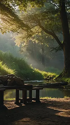 Imagine this: you’re totally stressed about that upcoming history test, or maybe drama with your friends. Suddenly, *poof!* You’re transported to this magical place by a river, surrounded by trees that look like they’re whispering secrets to the sun. Sunlight’s streaming through the leaves like nature’s own spotlight, making everything look dreamy. There’s even a comfy bench, perfect for leaving your worries behind and just breathing. This spot is seriously the ultimate chill-out zone; better than any video game or TikTok scroll, I guarantee it!