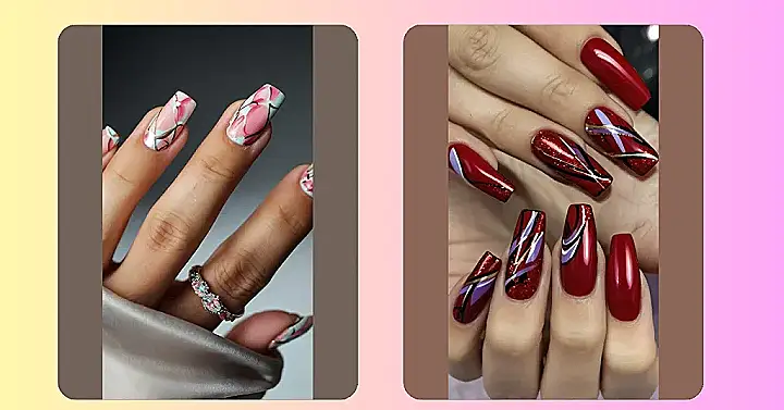 Forget elf shoes, these nails are where it’s at this Christmas season! The mix of glossy red with the swirly gold and purple accents is totally on trend, making it the perfect blend of classic holiday colours and modern nail art. It’s like wearing a mini masterpiece on your fingertips! You’ll be so busy admiring your own nails, you might forget to actually open your presents – but hey, at least your nails will look amazing in the holiday photos!