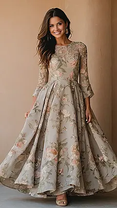 This isn’t your grandma’s tea party dress… unless your grandma’s a secret fashion icon! Seriously though, check out this long frock! It’s got that awesome floral vibe going on, like you just stepped out of a Monet painting, but way more wearable. It’s perfect for when you want to look effortlessly elegant but secretly spent an hour figuring out which earrings matched. Just saying!