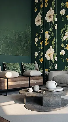 That gorgeous green room practically screams “relax!” Imagine sinking into those comfy-looking cushions, a book in your hands, while admiring those seriously stunning floral wallpaper panels. It’s like stepping into a secret garden, but instead of weeding, you just get to admire the beautiful blooms. It’s the kind of home wallpaper that makes even doing homework feel a little less…homeworky.