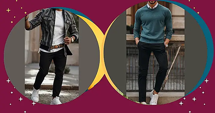 This guy’s got the casual cool down pat! He’s rocking a comfy black sweater that looks perfect for hanging out with friends or grabbing coffee. It’s like he just threw it on, but somehow it still looks totally stylish! And don’t even get me started on those cool grey pants. They’re a little bit dressed up, but not too fancy, and the way he’s got his white sneakers on makes his whole outfit look totally put together. He’s basically saying “I’m relaxed and cool, but I still have my life together.” Who wouldn’t want to be that guy?