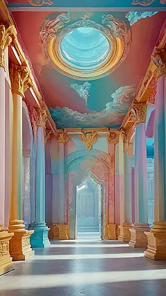 Imagine walking into a palace hallway that looks like it’s been dipped in a giant rainbow sherbet! That’s the vibe of this “palace wallpaper.” It’s like the architects couldn’t decide on a single color, so they just went with ALL of them. Someone clearly had a blast picking out the paint swatches, and maybe ate a little too much sugar while they were at it.