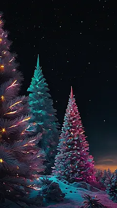 This isn’t your grandma’s Christmas wallpaper! Forget those cheesy, predictable holiday scenes – this vibrant image brings a whole new level of awesome to your iPhone screen. Imagine: glowing, otherworldly Christmas trees decked out in dazzling lights under a sky sprinkled with sparkly stars. It’s like a winter wonderland exploded with neon, ready to make your phone the coolest in the class! Seriously, download this and watch your friends’ jaws drop.