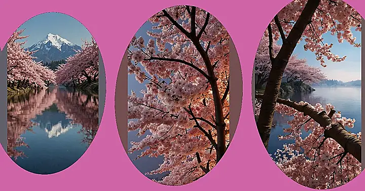 Imagine this: you’re chilling by a serene lake, the water so still it’s like a mirror reflecting a majestic mountain dusted with snow. And guess what’s framing this awesome view? A whole hillside exploding with gorgeous cherry blossoms! Pink and white petals everywhere, like nature decided to throw the most epic flower party ever. It’s so pretty, it’s almost unreal – the perfect wallpaper for anyone who dreams of escaping to a peaceful, picturesque paradise. Seriously, this scene is practically begging to be on your phone or laptop screen!
