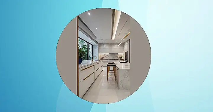 This kitchen is so fancy, it’s practically auditioning for a spot in a magazine! With its sleek white countertops, marble accents, and those cool pendant lights, you could totally imagine a celebrity chef whipping up a gourmet meal here. Just try not to spill anything; cleaning up would probably require a team of professionals.