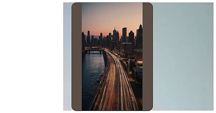This picture is like a dreamy cityscape wallpaper come to life! Imagine zooming in on your phone background, but instead of a flat picture, you’re actually flying over a highway at sunset. The city skyline looks all sleek and cool, like it’s posing for a photo shoot, while the cars down below leave these crazy light trails that look like fiery rivers. It’s totally epic and would make an awesome screensaver, wouldn’t it?