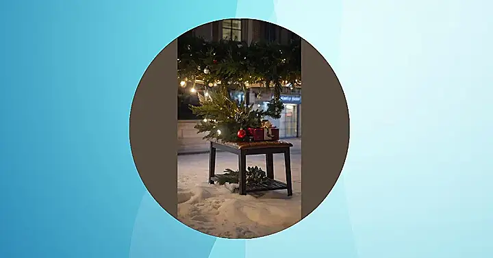 Imagine this: it’s Christmas in London, the city’s sparkling with festive lights, and suddenly… *whoops!* Someone’s left a beautifully wrapped present sitting all alone under a snowy, twinkling Christmas garland! Looks like Santa’s little helper had a bit of a mishap, maybe he tripped on a rogue cobblestone while delivering the goodies. This little table seems to be the victim of a very festive fumble, and that present looks awfully tempting! I bet whoever it belongs to is frantically searching right now.