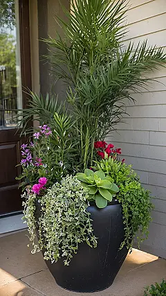 Check out that leafy crew in the pot! You’ve got the tall drama queen reaching for the sky and those little trailing guys acting all cool and nonchalant, just like in the picture. Filling your front porch planters with different plant buddies is seriously like giving your house its own welcoming committee that doesn’t ask for snacks. They just sit there, looking awesome, and making your entryway feel way less “meh.”