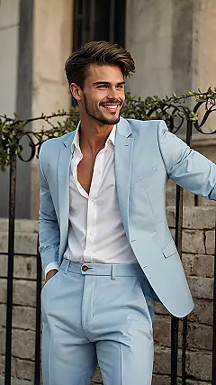 This guy in the picture looks totally ready to walk across the stage and grab that diploma like he’s collecting treasure after a quest. Wearing a sharp suit like this light blue one for graduation is like putting on your superhero costume for the real world. It’s way better than just tossing on whatever you wore to math class, showing everyone you mean business – or at least that you know how to dress for a big deal day. You might even impress that one teacher who always gave you homework over the holidays.