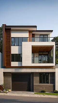 This house is like a fancy architectural sandwich, isn’t it? You’ve got the bottom floor all business with its garage, then the top floor is like, “Hey, let’s chill on this sweet balcony!” It’s a two-story design that screams, “I’m modern, I’m stylish, and I definitely have a robot vacuum for all this hard flooring!” Imagine throwing parties here; downstairs for the chips and dip, upstairs for the deep chats and staring at the stars (or maybe just scrolling through TikTok).